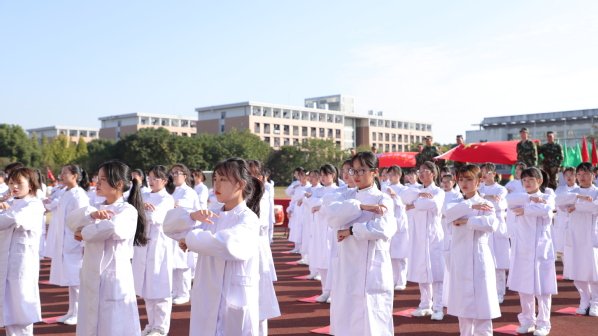 庄严的升国旗仪式后,校长吕延文致开幕词。运动员代表和裁判员代表分别进行庄严宣誓,党委书记徐须实宣布运动会开幕。