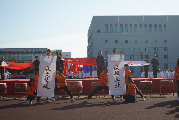 休闲体育专业的同学为大家带来旗鼓表演。红旗飘飘、战鼓雷鸣;由六个二级学院的400名2019级同学共同表演的节目是健身气功——八段锦,整齐划一,修身养性;校健美操舞姿曼妙,他们跃动的步伐洋溢着青春的活力,脸上欢快的笑容充满着自信,带动了会场的欢腾。